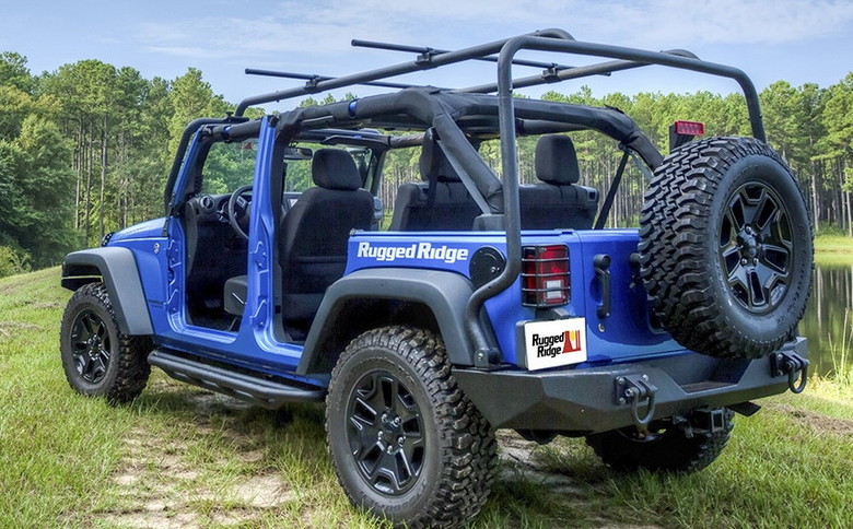 Do tego zderzaka, z uwagi na jego wytrzymałość, można zamontować mocowanie kola zapasowego. To wygodne mocowanie otwiera się wraz z drzwiami, można na nim montować kola nawet do 37 cali !!!